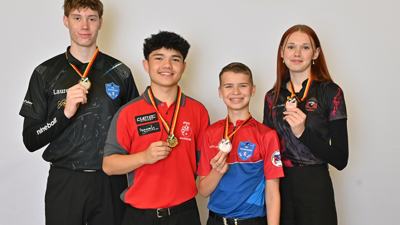 Grund zum Jubeln hatte die bayerische Delegation bei den Deutschen Billardmeisterschaften der Jugend auch am heutigen Dienstag. Im Snooker der U18 sicherte sich Joel Fandrei (BC Selb) die Vizemeisterschaft und auch im 9-Ball sind vier Sportlerinnen und Sportler des BBV noch im morgigen Halbfinale vertreten.